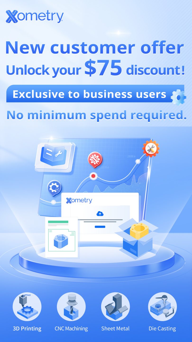 Discover a smarter, faster way to source custom parts in just a few clicks. As a new corporate user, you’ll enjoy $75 off your first order—with no minimum spend required.